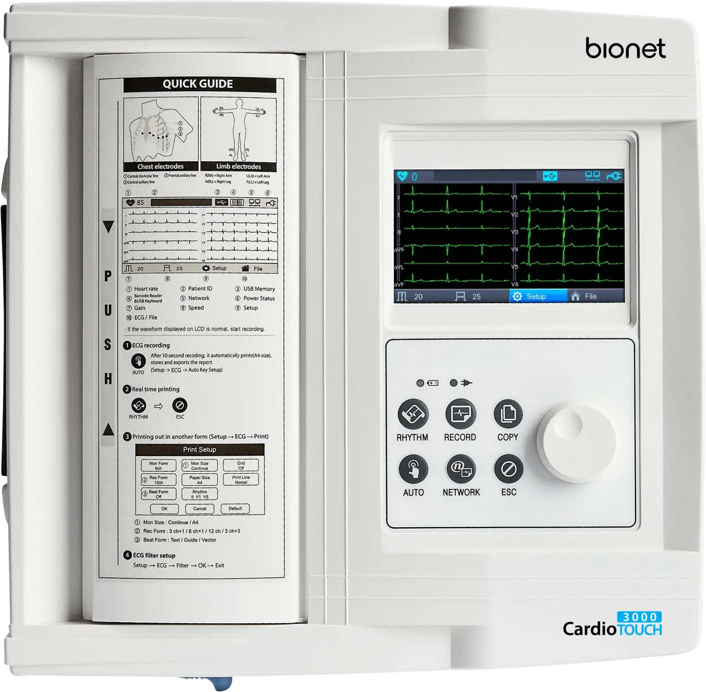The CardioTouch 3000 is a premium quality interpretive 12 channel electrocardiogram (ECG / EKG) machine that does not compromise on performance. Suitable for use in private practice, the ER, or hospitals. The CardioTouch 3000 is designed for maximum ease of use and convenience.