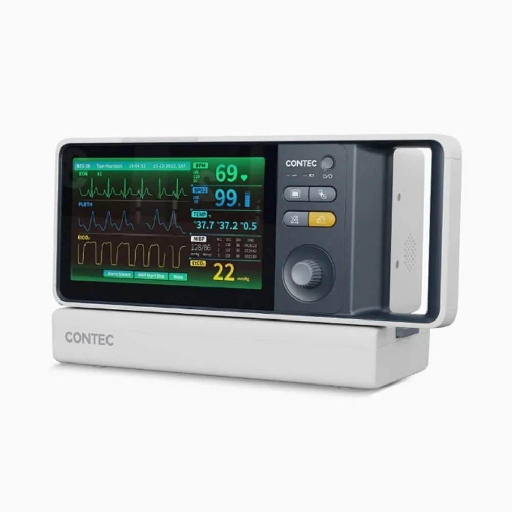 This monitor adopts a modular design and 7″ HD LcD, operating with buttons and knob.lt can achieve monitoring of multiple parameters, such as SpO,PR, NlBP and TEMP, cO, (optional) and EcG (optional). lt integrates parameter measurement, display and output into onedevice, and delivers an uninterrupted monitoring for adult, neonate and pediatric.