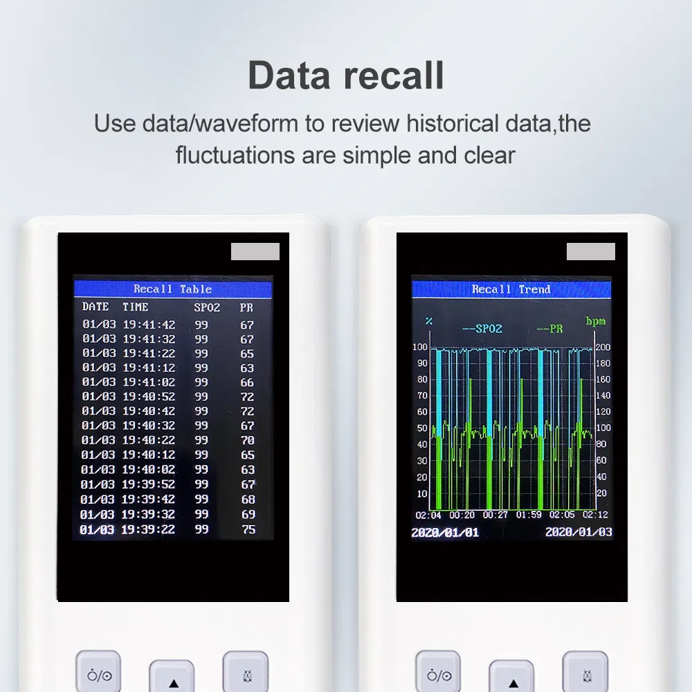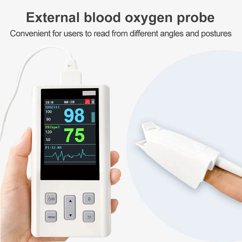 - Big size2.8 inch colorTFTLCD display for SPO2/PR/Pulse bargraph/plethysmogram. 6.Visual and sound prompt function.