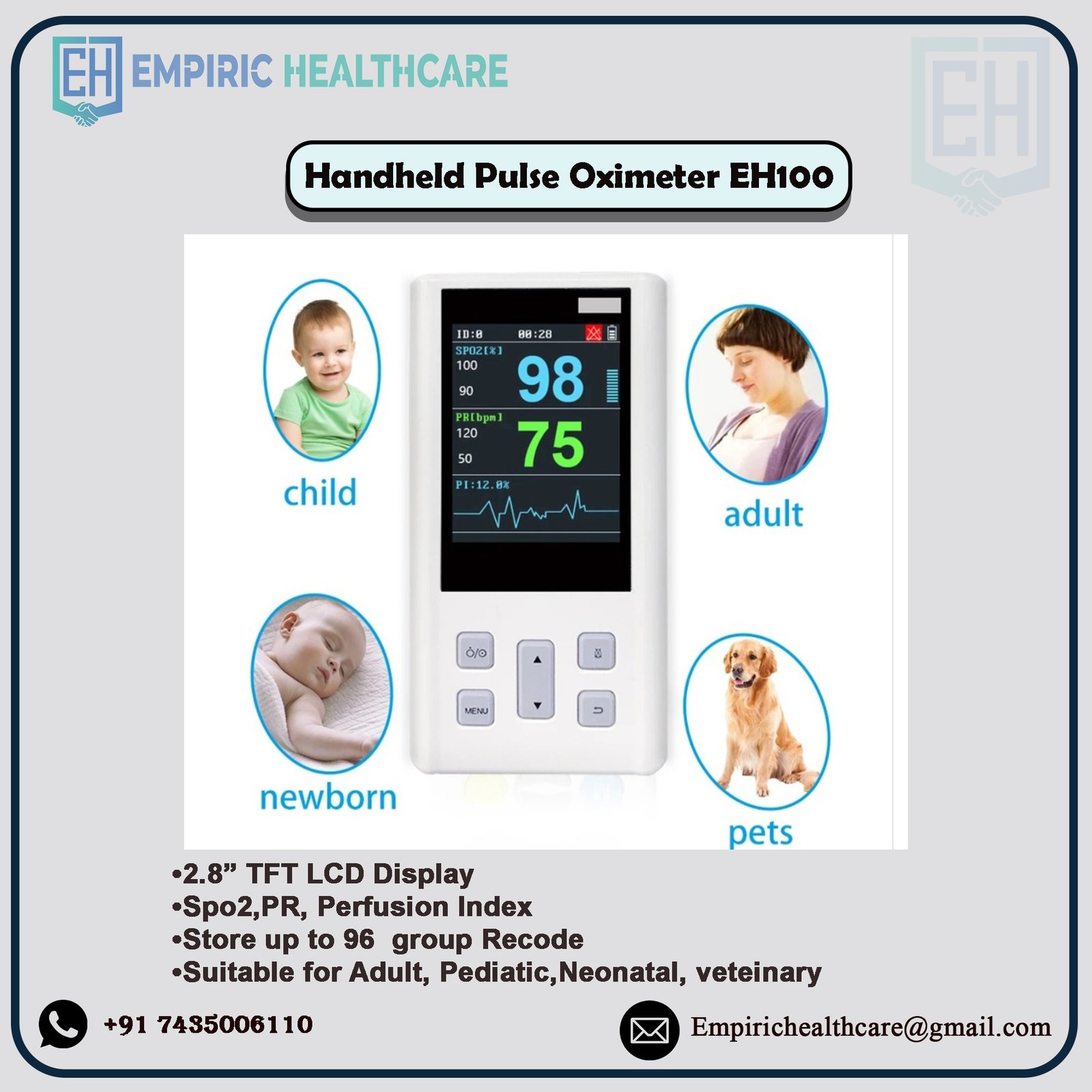 - Support the oximeter probe for adult, neonate infant,pets.